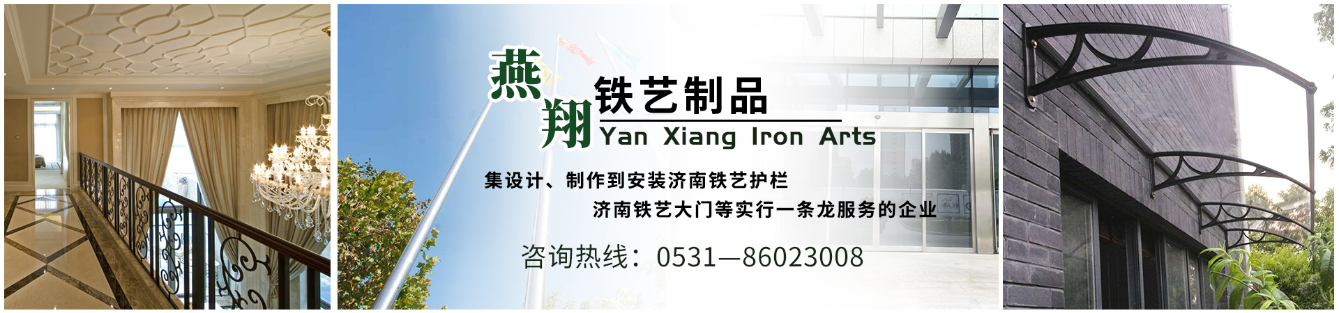 济南燕翔铁艺制品有限公司是一家集设计、制作到安装济南铁艺护栏,济南铁艺大门等实行一条龙服务的企业,具有高标准、高科技的管理模式,并有着多年的设计、生产、制作经验,工艺精湛。企业生产安装各种不锈钢系列产品:铁艺楼梯、铁艺护栏、铁艺大门、铁艺护窗、钢梁雨篷、地下车库雨篷、各式汽车自行车雨篷、钢结构工程、玻璃门、感应门、幕墙等工程。制作各类不锈钢异形、不锈钢扶手、护栏、不锈钢防盗门、...
