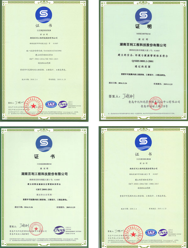 公司2001年12月通过了GB/T19001认证,2007年9月通过了GB/T24001、GB/T28001、Q/SHS0001.1体系认证。2013年9月通过了青岛中化阳光管理体系认证中心有限公司的质量与HSE两个管理体系合并认证。