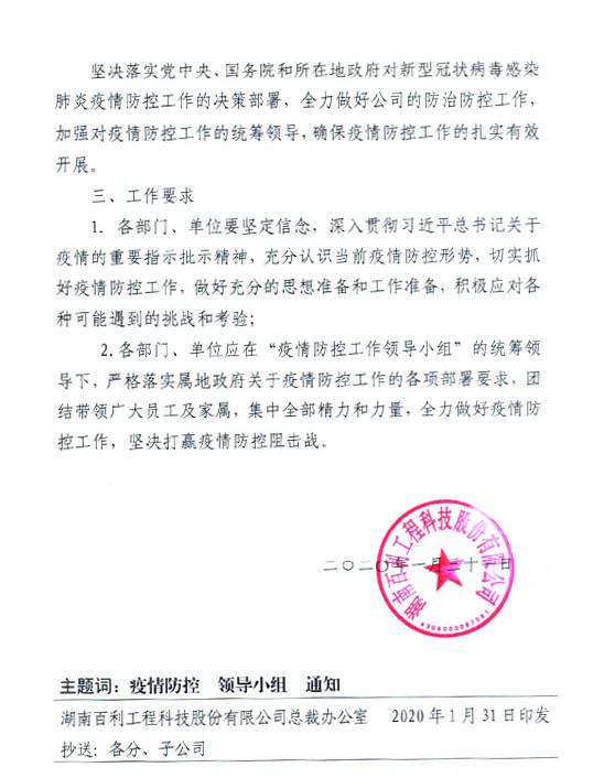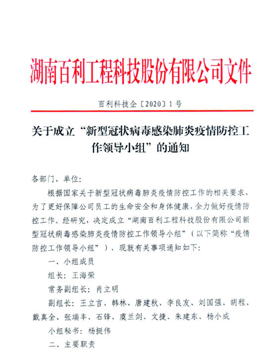 关于成立"新型冠状病毒感染肺炎疫情防控工作领导小组"的通知