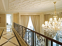 3、款式多样,置于家中,彰显典雅的气质。在早期建筑中,铁艺楼梯和扶手是常见的楼梯建材。不仅因为目前的冶炼工艺,更因为时代背景下铁艺所代表的荣誉和精神。到目前为止,铁艺楼梯已不再是当天的贵族风采。在这里,贵气的金色 复杂的古典图案 流畅的楼梯扶手完美地融合在一起,有效地诠释了什么是经典与昂贵。